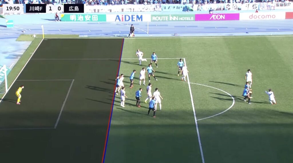 ジャメらしいゴールだと思ってたら、オフサイドで取り消しに。これはなしだわ。意地悪。逆によく見つけたわ。たぶん誰もそこ見てない。どっちかというと中野が引っ張られたとことか相手が倒れたとこ。こんなオフサイドを細かく取る前に、越道の脚を踏んだとことか遅延行為で広島にイエロー出して川崎に出さないというブレブレのジャッジを細かく検証して勉強してほしいわ。