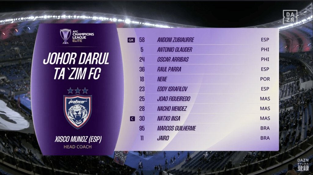 ACLEラウンド16第1戦、アウェイのジョホール戦…負けちゃいました